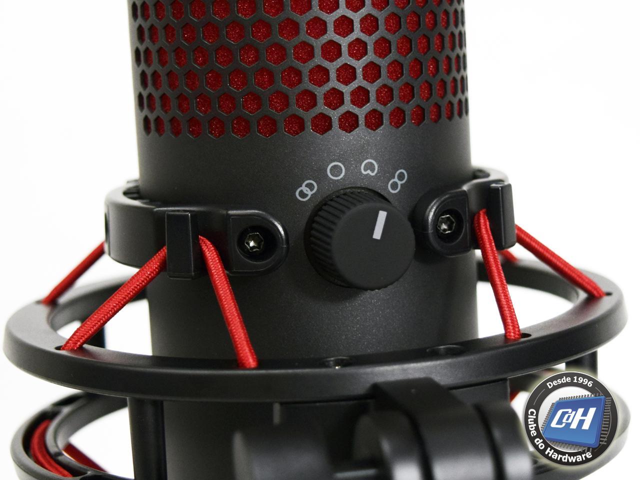 Outro recurso muito interessante do QuadCast é o botão para silenciar o microfone, que fica na parte superior. Basta tocar suavemente no microfone para que ele fique mudo, e há um retorno visual imediato: a iluminação se apaga. Isso permite que você saiba facilmente se o microfone está ligado ou não, o que é excelente.