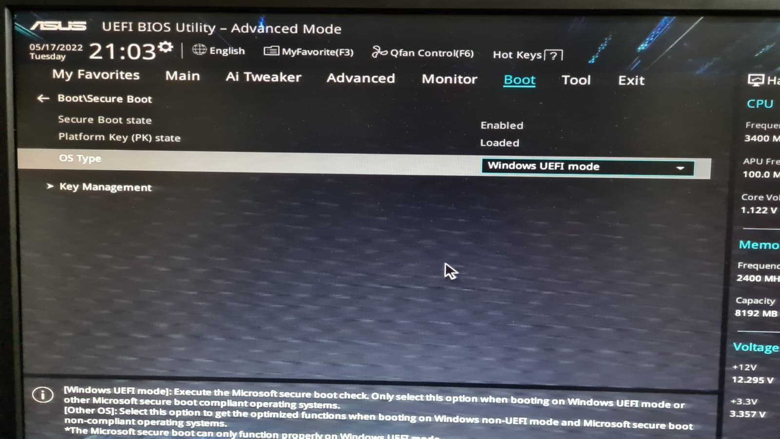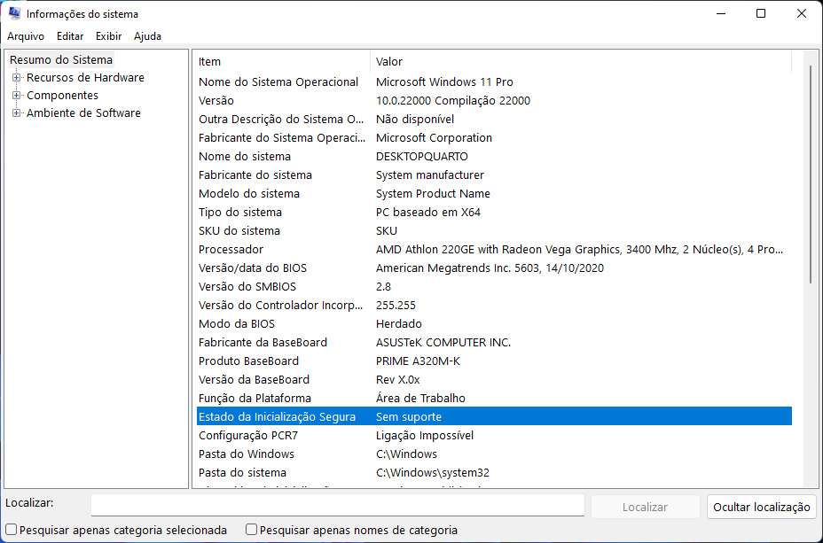 Não consigo ativar o Secure Boot na placa-mãe ASUS A320M-K