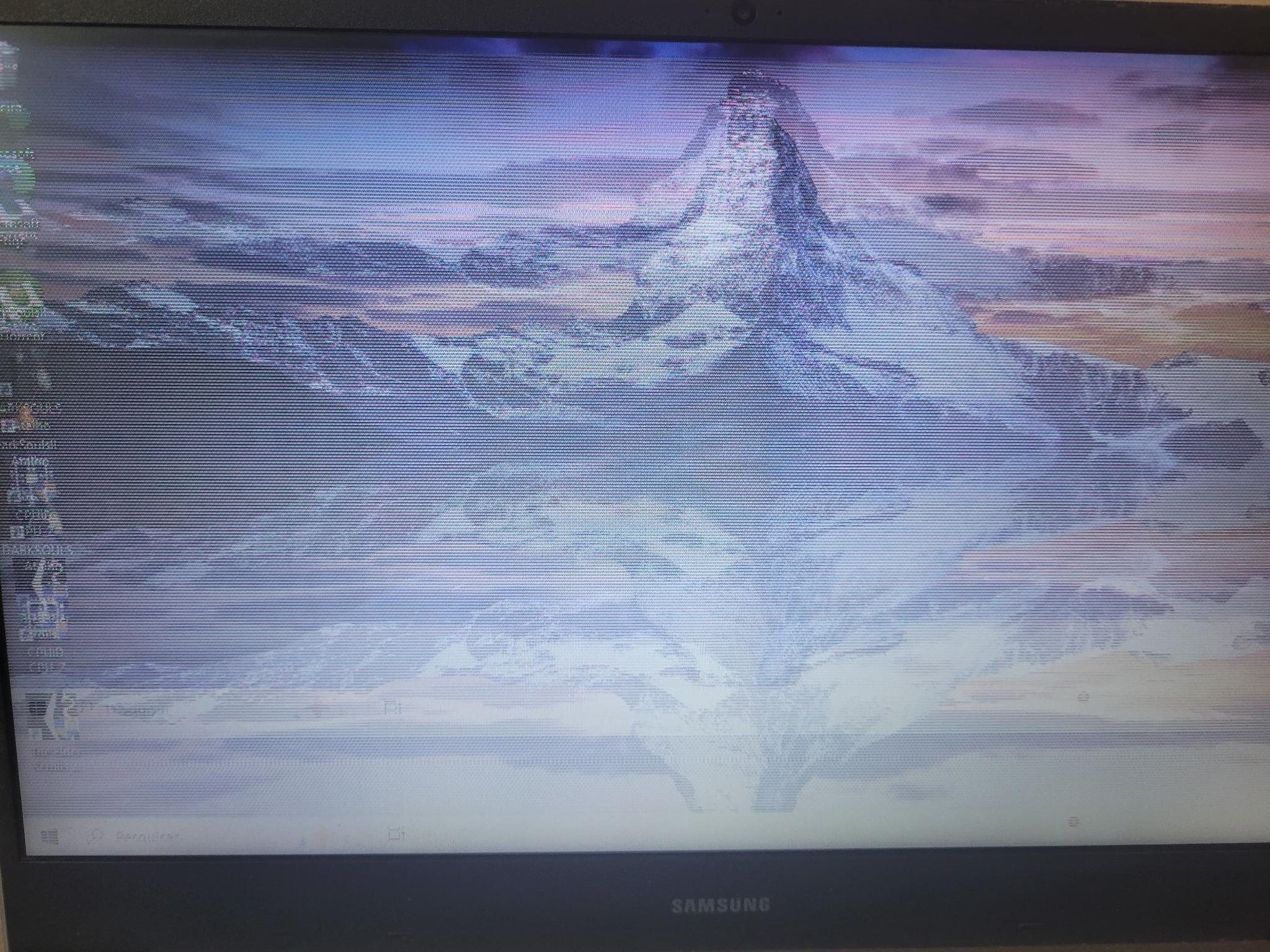 Notebook Samsung E20 com listras na tela e imagem duplicada