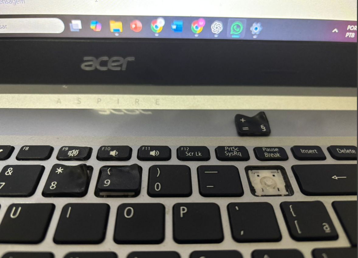 Teclas do notebook Aspire 5 A15-54G-53XP amassaram após trocar memória