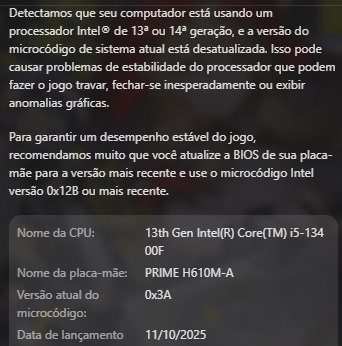 Como atualizar o microcódigo do processador Intel Core i5-13400F?
