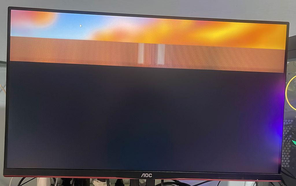 Foto 2: (Monitor AOC apresentando chuviscos e artefatos assim que o driver da AMD tenta ativar a frequência de 144Hz).