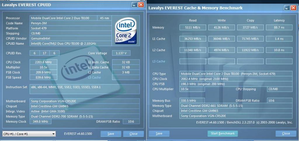 CPU #1 Intel® Core2 Duo CPU T8100 @ 2.10GHz, 2094 MHz