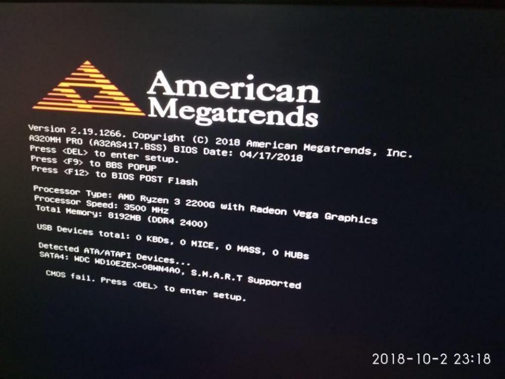 1. Comprei um computador em julho, e ele apresentou um problema de não dar nenhum vídeo ontem. Fiz o procedimento para testar qual era o problema, não era monitor, cabo, nem placa de vídeo, então acredito ser algo na placa-mãe. Ao retirar e recolocar a bateria e a memoria RAM, ele voltou a ligar, mas aparece uma tela de erro da memória CMOS, ele está funcionando, apenas dando esse erro. Alguém pode me dizer se tem alguma maneira de resolver, ou se vai ter que mandar para garantia? Queria evitar isso, mas se for o jeito. Configurações: Placa-mãe Biostar A320 Processador Ryzen 3 2200g Memória CRUCIAL BALLISTIX SPORT 8GB (1X8) 2400MHZ PLACA DE VÍDEO GALAX GEFORCE GTX 1060 6GB EXOC WHITE A foto é do erro que está dando ao ligar.
