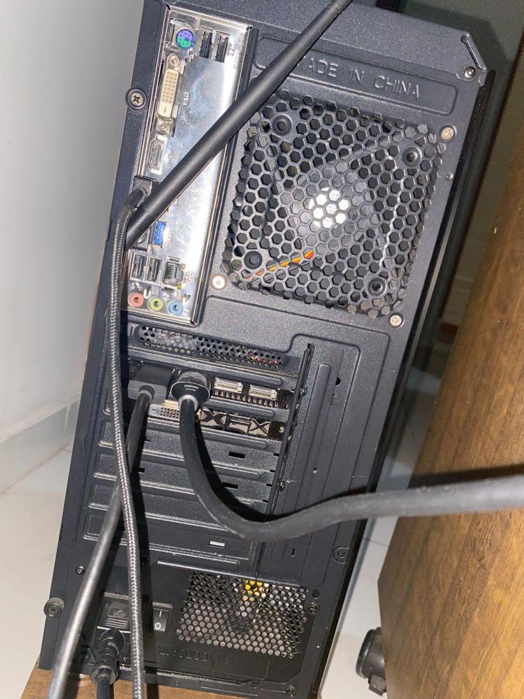 Peguei o monitor de volta, comprei o suporte de pistão pros dois, minha placa de vídeo RX 580, tem saída pra somente um HDMI e três display port.