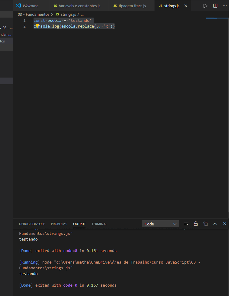 Porque esse comando não está funcionando? const escola = 'testando' console.log(escola.replace(3, 'x')) O console deveria mostrar "tesxando", mas isso não acontece ele escreve "testando".