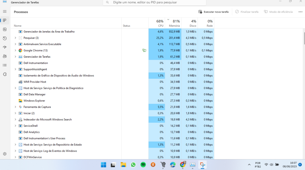 2. Desde o Windows 10 meu notebook vinha sofrendo com o alto consumo de RAM pelo processo Gerenciador de Janelas da Área de Trabalho. Atualizei pro Win 11, mas continuou a mesma coisa. as vezes passa dos 90% e o notebook escure a tela e fecha todos os apps. Já rodei um script que tinha em alguma pergunta parecida no Clube do Hardware, mas não resolveu. Alguém sabe o que fazer? Modelo: Dell Inspiron i15-5584-A20S
