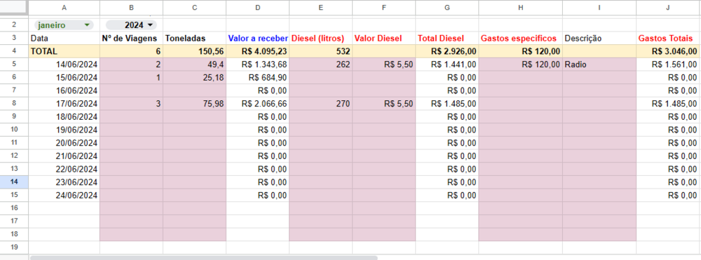 1. Tenho uma tabela de dados de viagem e preciso registrar diariamente esses dados. Para não ficar demasiado longo a página de registro, queria que ao registrar um novo dado, estes passassem para uma aba de backup, e assim, ao mudar o mês, os dados registrados fossem limpos da aba principal para que os novos dados no mês presente fossem registrados. Seria preciso poder editá-los, ou seja, caso eu selecionasse um mês anterior os dados fossem tragos de volta à aba principal novamente. Segue anexo da imagem Link planilha https://docs.google.com/spreadsheets/d/126y_nwxDeMi0b7ArTHqkTcN877roT8EpeTT_O7GyCu8/edit?usp=sharing Ou seja, a minha questão é toda informação que eu inserir de dado nas colunas lilás serem salvas automaticamente em uma aba de backup junto ao mês e ano que se referem. Se eu mudar o ano ou mês na caixa de seleção, a planilha tem q resetar os dados na aba principal, ou seja limpar as colunas lilás, mas sempre salvando na aba de backup as informações do mês e ano. tem que ser possível voltar pro mês e ano selecionado anteriormente, com os dados voltando da pagina de backup pra pagina principal para que seja possível reeditar.