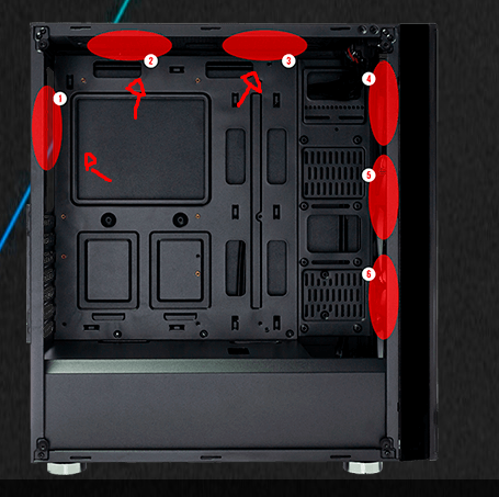 11. Pessoal, tudo bem? Tenho uma dúvida em relação a minha nova placa de vídeo e gostaria de saber se alguém daqui poderia me ajudar. Troquei de PC recentemente com configs bem diferentes, e sou meio que leiga no assunto. Estou com uma RTX 2070 e ela fica em 80º C em full load e fico um pouco preocupada pela temperatura parecer alta.. é normal? Antes de trocar por esse pc eu tinha um FX 6300 e qualquer coisa que envolva temperatura (mesmo sendo comps diferentes) já me deixa meio que ''traumatizada'' (rsrs). O modelo dessa placa é a blower, justamente a que (pelas minhas pesquisas) esquenta mais. Gostaria de saber vcs acham que a instalação de fans no gabinete possa ajudar e em quais posições elas poderiam estar? meu gabinete possui mais 3 espaços para fans que ainda não utilizei mas estava pensando em usar nos locais da img que anexei.