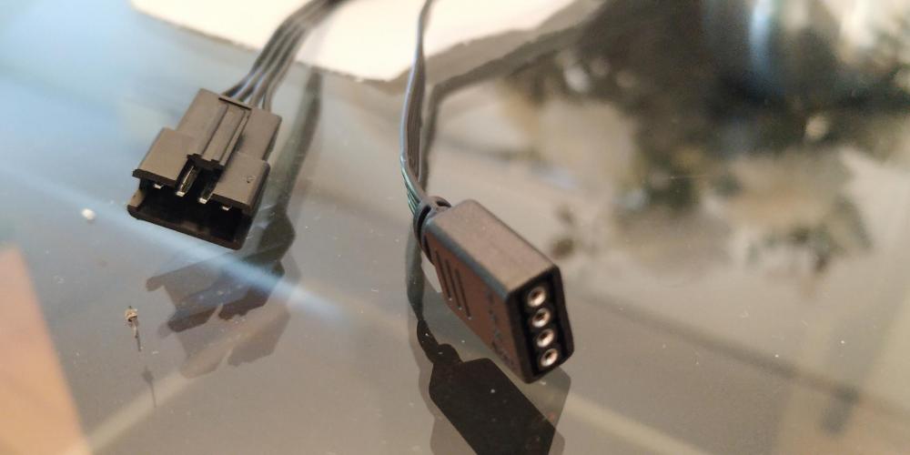 Olá, comprei o gte rgb e após a instalação, ele não acendeu os leds O fan veio com dois cabos, o cpu fan e o destinado aos leds. Esse destinado aos leds é aquele 4 pinos padrão que pode ser colocado no sys_fan e foi o que eu fiz, entretanto, não funcionou. Ele também vem com um adaptador que coloca nesse cabo dos leds e tem saída 12vGRB mas minha placa-mãe (tb350 btc) não tem o rgb header. Tem algum jeito de usar o rgb? (Foto do adaptador)