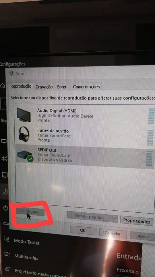 Olá, tudo bem? Estou com um problema e gostaria de uma ajudinha... Adquiri uma Asus Xonar SE pra fazer a ligaçao entre meu pc e o HT via cabo óptico mas o windows não identifica o 5.1 no painel de som, o botão "configurar" está indisponível (imagem 1) Entretanto, ao fazer um teste nas propriedades do dispositivo com o DTS audio ou Dolby Digital (ambos na imagem 2), o surround funciona. Também na imagem 2, destaquei o "192khz" porque mesmo a placa de som possuindo suporte a essa frequência e estando ativado no próprio app da placa, o som não sai. Obs.: Todas as outras frequências funcionam. Estou sem saber o que fazer. Obrigado desde já