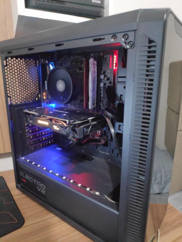 Olá, senhores(as) Então, estou em um dilema para fazer um upgrade no meu computador, tenho um orçamento de 5 mil reais, e gostaria de dicas, conselhos para poder dar um upgrade, será que os senhores podem me ajudar? As configurações do meu PC são: Placa de vídeo: Radeon 570 4GB Processador: Ryzen 5 1600 RAM: 16GB de 2400hz HD: 1TB SSD: 240GB Fonte: 450W, PCYES placa-mãe: Biostar 350Gt3, segue a foto do meu PC, humilde
