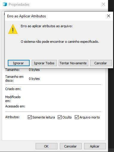 7. Boa Tarde, há algum tempo que algumas pastas no meu Windows Explores estão aparecendo sem nome, não consigo nem selecioná-las, quando clico com o botão direito, não consigo fazer nada também, alguém tem uma possivel solução? A primeira imagem é das pastas sem nome, e na segunda imagem, é quando eu clico com o botão direito e seleciono "somente leitura", "oculto", "arquivo morto".