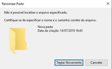3. Não estou conseguindo renomear nenhuma pasta no meu computador, fica dando que é impossivel achar local do arquivo, não sei o que fazer