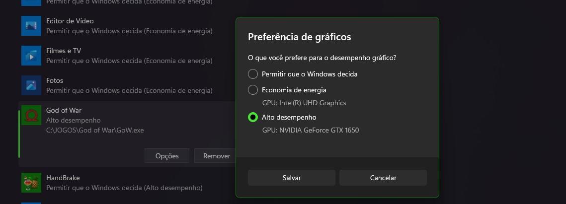 1. Olá pessoal tenho um jogo (God of War) o qual não consigo inicia-lo com a GPU dedicada sendo assim iniciado com o gráfico integrado(HD grafics). Até ontem o mesmo jogava com o a GPU dedicada gtx1650 e hj simplesmente não inicia mais! OBS: é um notebook o qual o jogo... ja fiz os seguintes processos: Fui em configurações de exibição > elementos gráficos > e selecionei o jogo para iniciar com o a gtx1650. Já fui em gerenciador do dispositivo e desabilitei a HD grafics. Nenhuma dessas tentativas funcionou... Detalhe o jogo não oficial é uma cópia do eloamigos...