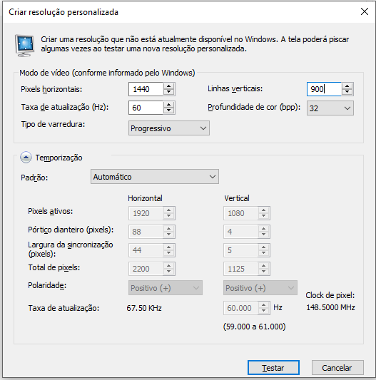1. Boa noite, eu estava com o mesmo problema que você, fiz o seguinte: 1 - Abri o (Painel de Controle Nvidia) 2 - Entrei na aba (Monitor/Mudar Resolução) 3 - Embaixo da escolha de resolução (Botão Personalizar) 4 - Nessa opção escolha (Criar Resolução Personalizada) 5 - Aceite os Termos de Condições 6 - Mude para configuração desejada, aperte o botão (Teste) 7 - Pronto você acaba de criar a sua própria resolução de tela. 8 - Na área de trabalho aperte botão direito (Configurações de exibição) e coloque a sua resolução 9 - Fim - Espero ter ajudado!!!