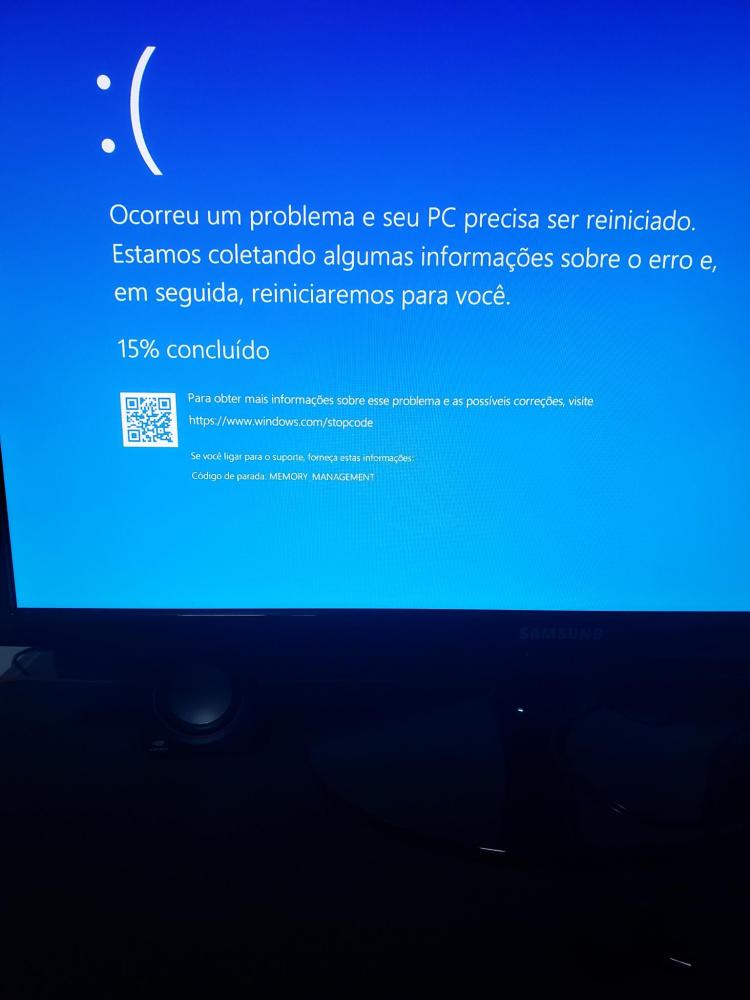 2. montei um PC na semana passada e desde a primeira vez, quando jogo uns 30 minutos ele fecha o jogo e volta pra área de trabalho, e algumas das vezes chega a reiniciar, e uma das vezes apareceu essa tela azul já fiz o teste de memória do Windows, já olhei as temperaturas dos componentes, já atualizei e reinstalei os drivers, já formatei também o PC, estou totalmente perdido , alguém consegue me ajudar ? ryzen 5 1600 Af rx 580 8gb red dragon gigabyte b450m ds3h 2x8 2400 MHz de ram kllisre fonte 700w gigabyte semi modular 80 plus bronze