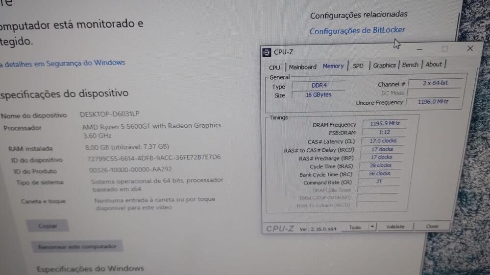 4. opa gente, boa tarde então, meu amigo tá com um problema no pc dele, que as Memórias ram não estão reconhecendo no sistema dele, ele possui 2x8 e ambas estão conectadas em dual channel na placa-mãe, ele usou o cpu Z e mostra que estão conectadas porém no sistema do windows fala que só tem 8gb de ram memória RAM : Kingston fury DDR4 2x8 3200Mhz placa-mãe : A520m ds3h v2 processador : Ryzen 5600 gt fonte : Mancer 600w