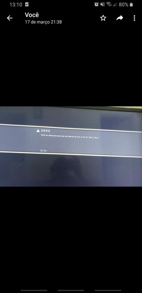 5. Boa noite, pessoal. Tudo bem? Olha, já pesquisei na internet, grupos, youtube, todos os canais possíveis. Depois de tanta procura me indicaram o clube, disseram que tinha pessoas que realmente entendiam. Estou aqui para pedir de alguma forma o auxílio de vocês. Voltado para a conexão PS4 Vou contar um pouco o que aconteceu. Minha provedora teve um problema semana passada(quebra de cabos) foi o que eles alegaram. Fiquei sem internet por algumas horas, mas depois que a internet voltou, ''rodando liso'' chegando 60mb, entro no meu jogo e depois de 5 minutos, caiu e aparece a mensagem ''VOCÊ FOI DESCONECTADO DO SERVIDOR'' e isso já faz uma semana, falei com a provedora, eles disseram que iam mandar um técnico aqui, mas depois que passar a pandemia do Coronavírus, ou seja, estou *****. Hahaha O que me causa estranheza, é que, antes desse problema(quebra de cabos) jogava normal, joguei 5~6 meses tranquilo. Estou mandando a foto com o erro. Conecto outro wifi(do vizinho) e o jogo vai normalmente, então creio que problema é minha internet, mas consigo jogar outros jogos normalmente pelo notebook. Alguém já passou por isso? Não conectar algum tipo de servidor por causa da sua internet, seja em qualquer plataforma?