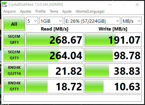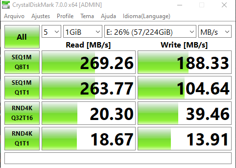 outra observação, quando passo o mesmo arquivo do SSD para o HD a velocidade é bem mais rápida, não sei se isso pode dizer muita coisa, mas preferi, dizer também: adicionado 1 minuto depois Paguei 30,58 dólares, a capacidade é 240 GB -