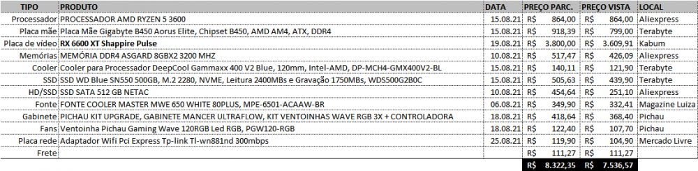 opa colega.. eu estou no mesmo dilema seu esperando a black friday. essa foi uma configuração que montei na pichau em março para ir monitorando os preços.