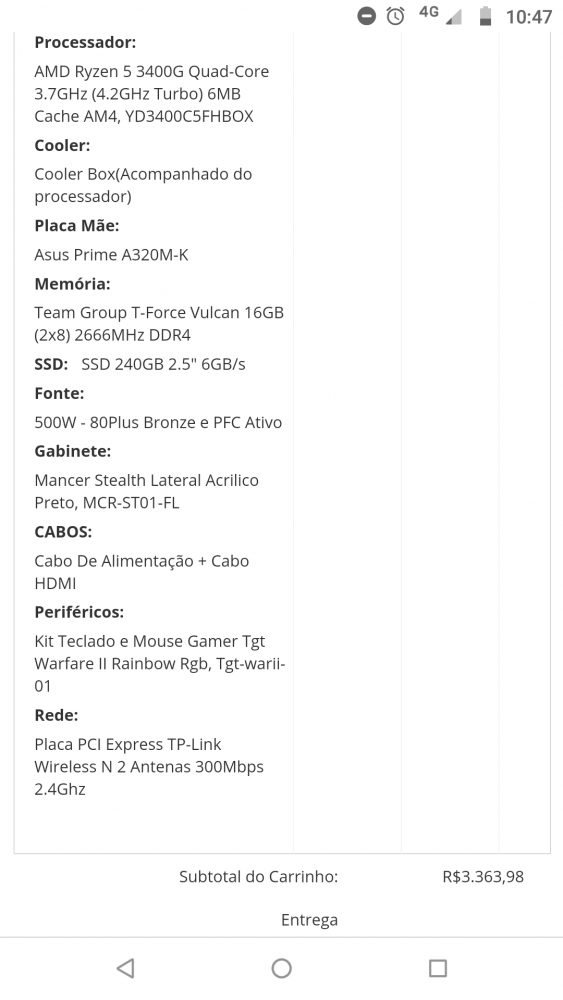 3. @Lucas122010 entao o que eu vi na terabyte é o mesmo preço só que com Ryzen 5 de 2 geração, eu montei o meu com Ryzen 5 de 3 geração na pichau com essas especificações e meu medo era sobre a loja por eu nunca ter comprado e se essas peças são boas e não sobras de estoque como vó algumas pessoas falarem em outros forums