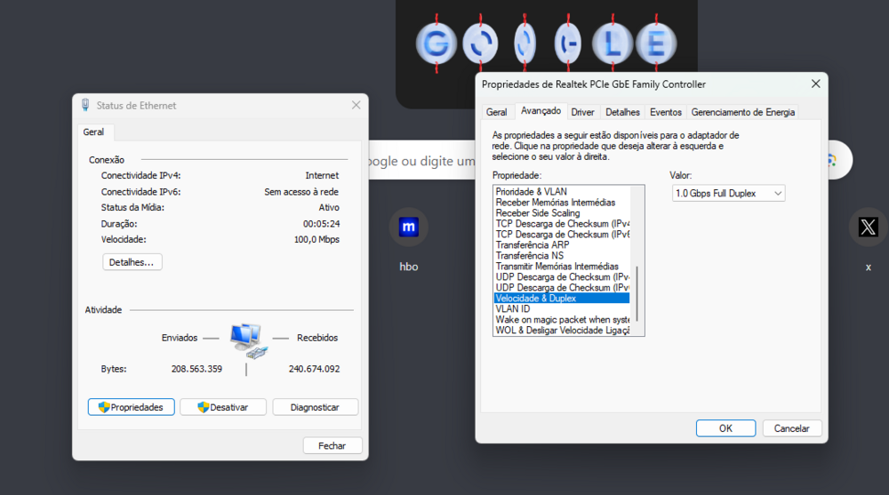Olá pessoal, tudo bom? Eu pago 800megas de internet, e só utilizo 100mbps. Já contatei a provedora, e disseram que talvez o problema era o cabo, então troquei para um Cat5e, depois eles vieram aqui e trocaram para um modem mais atual. Porém, ainda continuo recebendo somente 100. Os drivers estão atualizados Minha placa-mãe: B450M PRO-VDH MAX. Modelo do modem: Huawei OptiXstar EG8145X6-10 Alguém poderia me ajudar? E já fiz essa configuração, Full duplex