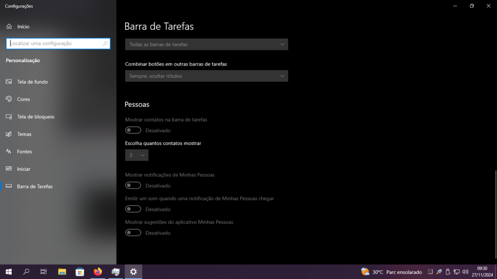 5. não estou conseguindo desativar as noticias e o clima da barra de tarefa assisti videos dizendo que so aperta com botao direito do mouse na barra de tarefa dps em Selecione Notícias e interesses mais no meu não tem isso