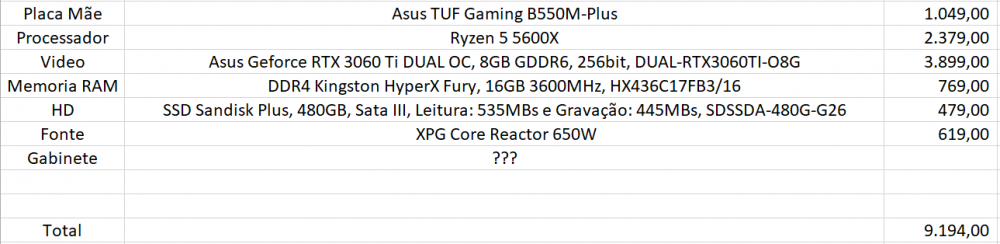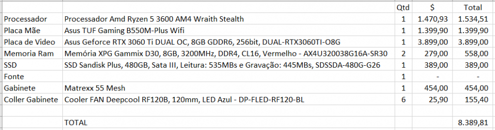 Estou precisando montar um PC mATX até 4k para trabalho e ocasionalmente jogos e artes graficas leves. Dei uma pesquisada e estou na seguinte configuração: