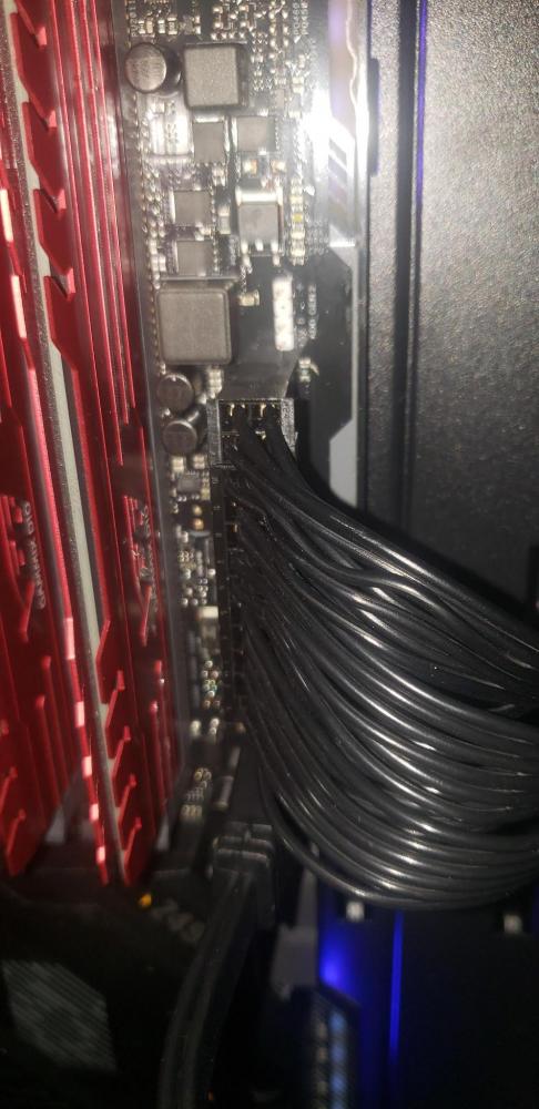 9. Olá, boa noite pessoal, tudo bem? Acabei de montar meu pc e ao tentar fazer a primeira ligação, o pc simplesmente não liga. A mobo acende os leds e quando aperto o botão de POWER, a fonte da um pequeno estalo As configs são: i7 10700k Mobo Asus Tuf Gaming z490 plus Memória XPG Gammix D10, 16GB (2x8GB), 3200MHz, DDR4 Fonte 750W Gigabyte 80Plus Gold SSD M2 nvme Kingdian 512Gb Será que é a placa-mãe zuada, algo que montei errado?? Segue as fotos: