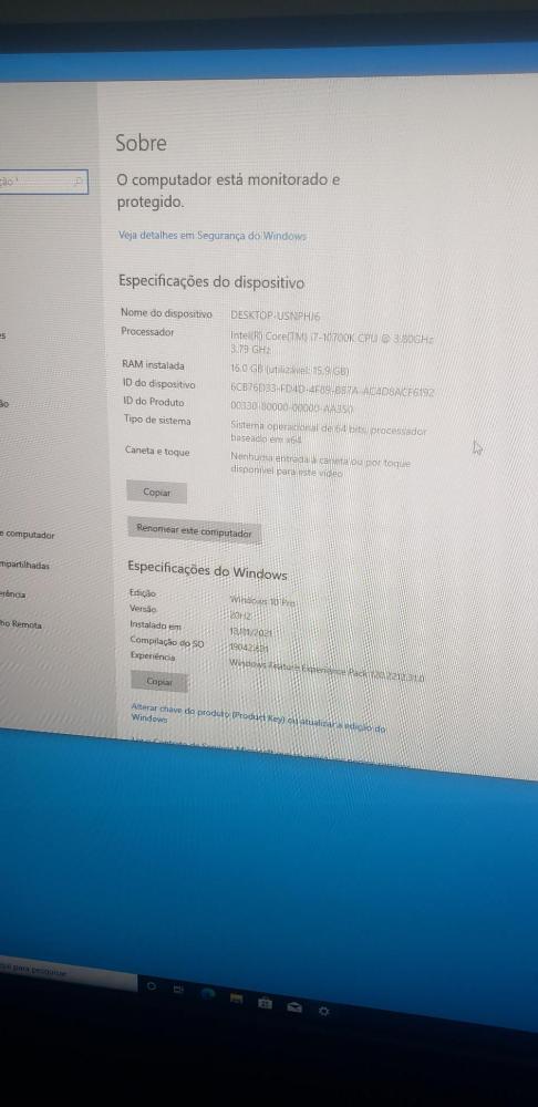 6. Pior é que esta. Coloquei uma foto das infos do Windows, acredito que esteja em uma versão bem atual também! Vou prosseguir com o RMA