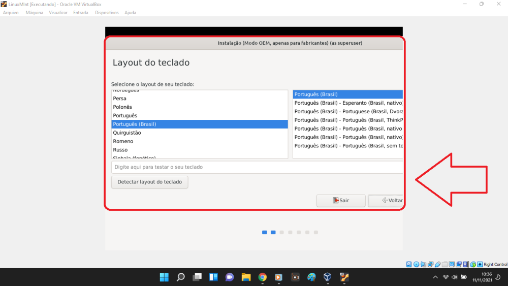 5. Alguém pode me ajudar? Quando vou virtualizar o Linux Mint no VM VirtualBox e criar um tutorial para instalação do SO, o VirtualBox "come" uma parte da tela. Conforme a imagem. Já alterei as configurações, mas não consigo consertar.