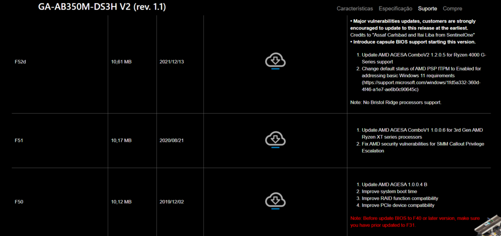 Não consigo habilitar o Secure Boot na placa-mãe GA-AB350M-DS3H V2