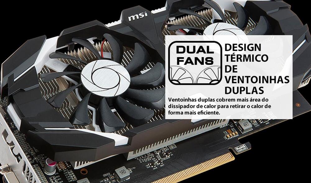 @Sucur1 Uma boa opção dentro do seu orçamento é a PLACA DE vídeo MSI GeForce GTX 1050 TI 4GT OC, 4GB, GDDR5, 128-BIT, 912-V809-2272-NAC ESPECIFICAÇÒES: Marca:MSI Modelo:912-V809-2272-NAC GPU:NVIDIA® GeForce® GTX 1050 Ti Núcleos:768 unidades Clock:1455 MHz / 1341 MHz Clock de memória:7008 MHz Tamanho de Memória:4GB GDDR5 Interface de memória:128 bits Barramento padrão:PCI Express x16 3.0 OpenGL:4.5 Tecnologia G-SYNC™:Sim Entradas:DisplayPort (v1.4a) HDMI (suporta 4K @ 60Hz conforme especificado em HDMI 2.0b) DL-DVI-D Máximo de exibições:3 DirectX:12 Resolução máxima:7680x4320 Dimensões:215 x 112 x 38 mm TERABYTE Shop PICHAU Informática AMAZON do Brasil -