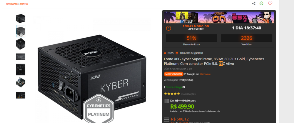 6. tem alguma diferença técnica entre essas duas? primeira é da kabum e a segunda é da terabyte Quero sair de uma Shocker 600w (antiga) para essa da XPG de 850w e mais atual