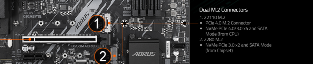 2. Então, estou com uma dúvida... Eu tenho uma B550M AORUS ELITE, ela tem 2 espaços para NVMe, porém uma aceita 4.0/3.0 e a outra só 3.0. Eu já tenho um NVMe PCIe 4.0 x 4 e iria comprar outro que também é PCIe 4.0 x4, mas na placa diz que a outra entrada só cabe 3.0 x2... O que influenciaria colocar um 4.0 x4? Já possuo esse: E pro outro slot eu compraria esse:
