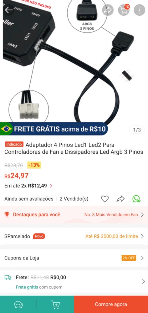Eu tenho um gabiente Montech Sky One Lite e ele tem uma fita de led na frente. Bem, ela tem uma conexão direta ARGB 3 pinos pra placa-mãe. E recentemente comprei uns fans ARGB com controladora, mas ai que tá o problema. A minha placa-mãe (ASUS tuf b550-plus wifi II) tem somente uma entrada ARGB 3 pinos (add_gen 2). Ai eu encontrei esse adaptador, que faz a entrada 3 pinos da fita led conectar na entrada de led da controladora. Tem algum problema eu usar? Segue anexos pra mais detalhes Outra dúvida, os fans que eu comprei são 12v, mas a controladora conecta no argb 5v. No caso o que faz o fan rodar é os 12v é alimentado pela fonte com a porta SATA e os RGB dos fans por 5v da placa-mãe? Obrigado