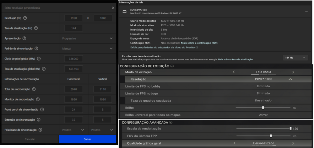 Minha placa de vídeo é uma RX6600xt, já tentei todas as opções de melhoramento de imagem que o software da AMD disponibiliza, mas nenhum fez diferença, então deixo no padrão.
