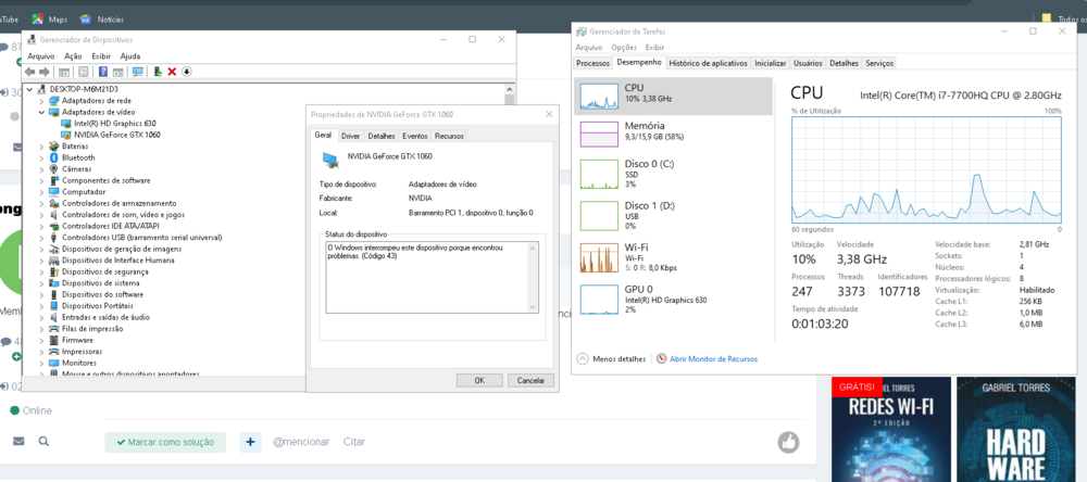 12. antigamente meu notebook samsung funcionava perfeitamente, ate que a placa de Vídeo dele morreu do nada e sistema não a reconhece mais. a config era : I7 7700HQ, 16GB RAM, SSD 220GB e a GTX 1060 6GB agora esta apenas com o processador funcionando estou pensando em fazer e gpu, so não sei se vai dar certo e reconhecer as pecas.