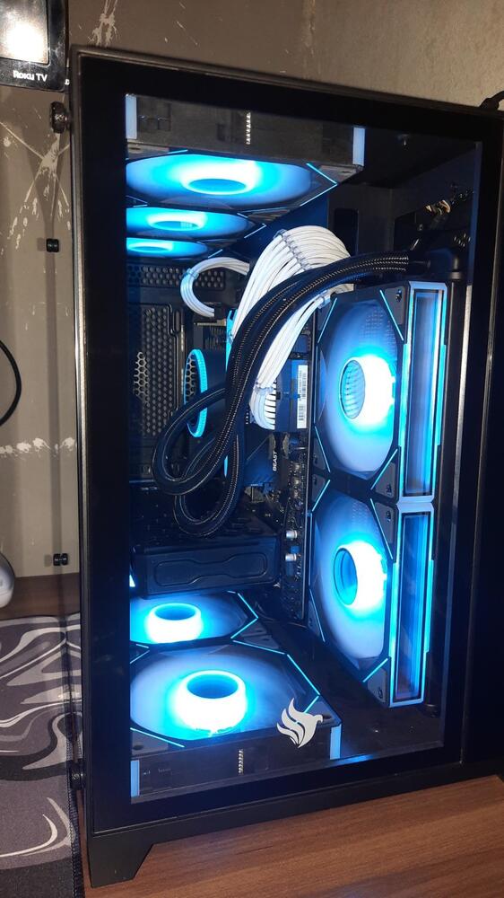 @Necklace Essas fans são reversas, são aquelas "cópias das Lian Li". As de baixo e as do lado são reversas. Essas fans já estão instaladas do jeito certo. Essas fans são reversas. Vou deixar o link para ficar mais fácil de entender. Aqui está o link para as fans da Teucer JM1 do AliExpress. Elas estão disponíveis nas versões reversa e normal. No meu caso, as fans da parte de cima do PC são normais (as que puxam o ar quente para fora), e as de baixo e do lado são reversas (as que puxam o ar frio de fora para dentro do PC). Coloquei esses cabos sleeved mais por estética. Como assim? -