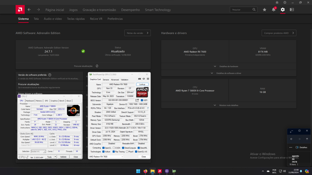 PC com Ryzen 7 5800X e Radeon RX 7600 dando lag