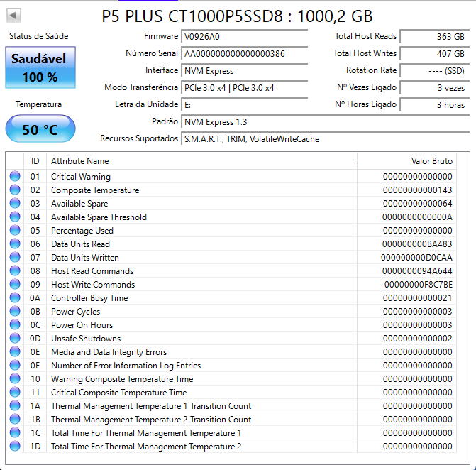 1. @Edvaldo J. Frederico Boa tarde, Sim, adicionei próximo ao processador. Crystal disk: