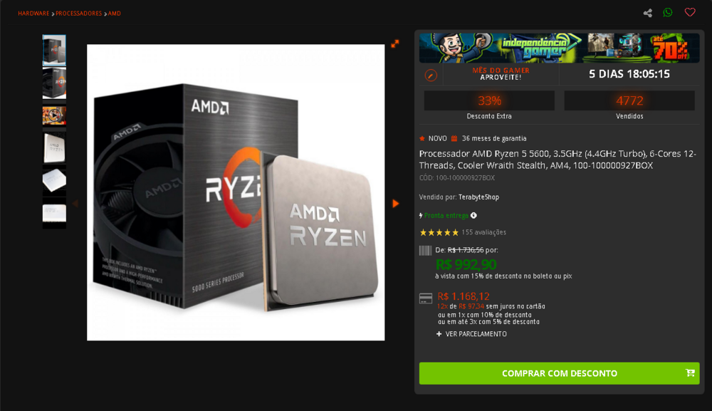 8. @Pedroou Esqueci de especificar os sites de minha busca, no caso, sites que já tenho alguma familiaridade comprando produtos eletrônicos. Confio bastante na Terabyte (nunca me causou prejuízo algum) e Pichau. O 5600 de R$830 reais é da Amazon, correto? O senhor tem alguma experiência comprando por lá? Eu poderia confiar na garantia e entrega deles?