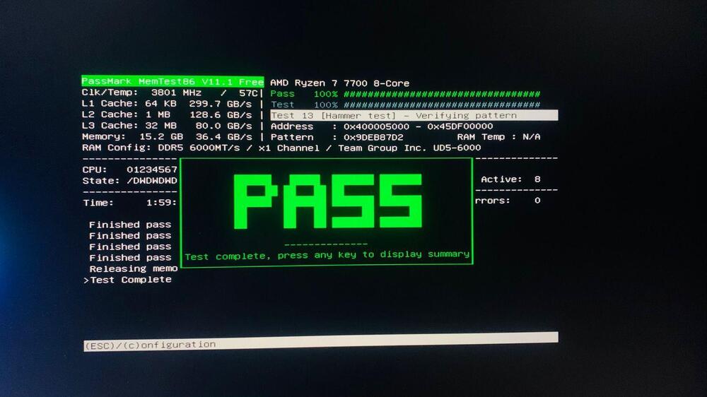 Comprei na Kabum! e você? Onde comprou o seu? No início fiquei até um pouco mais despreocupado porque vi o mesmo erro em processadores diferentes e até placas diferentes, mas, agora depois de tantos testes etc, não me vem nada a mente senão efetuar a troca do processador e quem sabe até da placa-mãe. Enviei o e-mail pra eles e verei como reagirão, de imediato já tenho uma péssima ideia do pós-venda deles, até pra conseguir manter contato é ruim. Fiz a compra de um PC já montado e várias outras peças na Pichau e o pós venda é totalmente diferente, excelente e atencioso... Por fim, só por desencargo, fiz o memtest só com um pente de memória(que é como estou usando o PC pra saber se não era a memória ocasionando alguma incompatibilidade por serem de MHz diferentes).. -