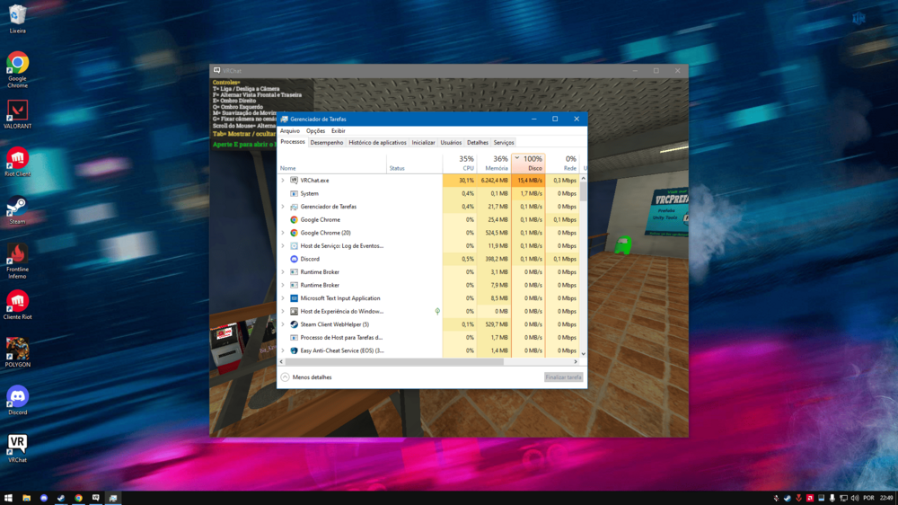 1. Voltou a ocorrer o problema, não se foi a atualização de algum driver do pc. o windows que estou usando agora remove tudo, desde o sysmain até o visualizador de eventos do windows. ele volta a dar disco 100% em jogos mais pesados. até mesmo no valorant tem acontecido.