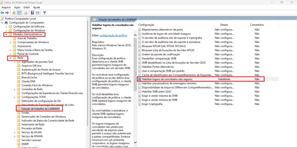 1. O que aconteceu, o Windows atualizou e não deixa entrar na pasta compartilhada pelo nome do domínio, somente pelo ip. Preciso entrar em casa maquina e fazer esse caminho todo para liberar o acesso novamente.
