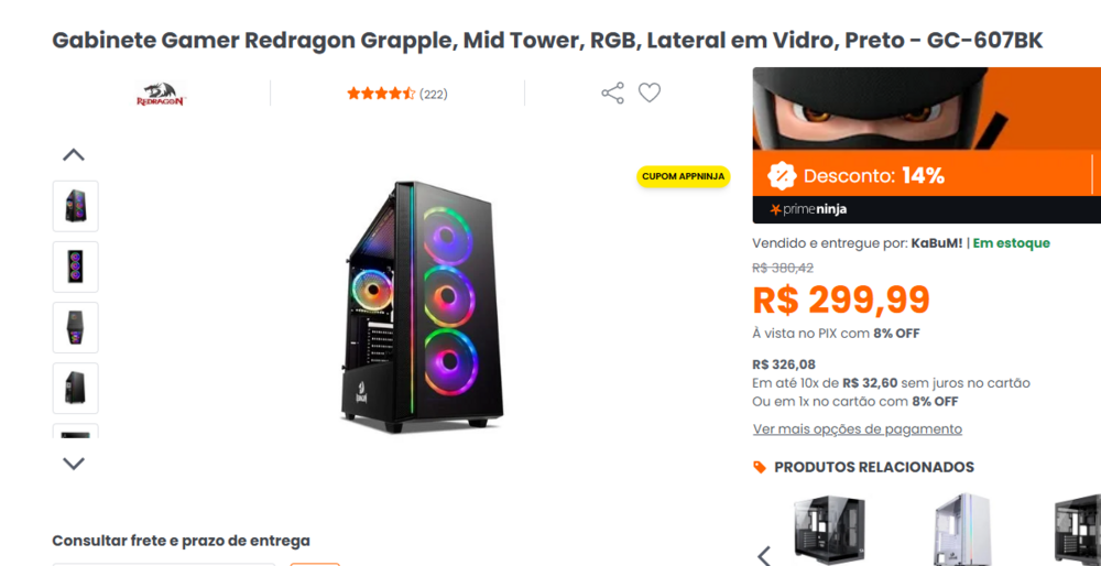 6. Pesquisei no meupc.net e ele constou que cabe no meu gabinete sim(Redragon Grapple). Pelo seu conhecimento acha que cabe mesmo esta placa de vídeo? Pela foto esta certinho mesmo, não entendo tanto então costumo ter muito receio.