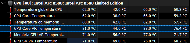 1. Salve rapaziada, boa tarde recentemente compre uma gpu para meu pc para consegui rodar jogos no ultra com folga ela chegou esses dias e esta tudo uma maravilha com ela em desempenho, porém me surgiu uma duvida quanto a temperatura do gabinete e queria saber se vocês acham que esta tudo certo com isso e eu devia so fechar o msi e o hwinfo e jogar dboa (detalhe que eu moro no pará, um estado que e mais quente naturalmente) temperatura da cpu e da gpu no hwinfo rodando red dead 2 no ultra: o que mais me preocupa e esse gpu core vr temperature que bate 88 graus, mas não sei se e normal dessa parte da gpu pois de resto a maioria mantem abaixo dos 70