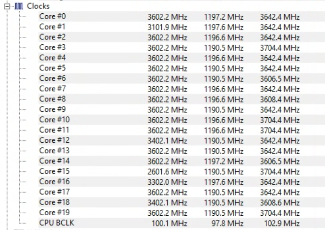 2. Bom, vamos lá: fiz alguns testes sobre a frequência e nada se resolveu, pesquisando mais a fundo percebi que esse processador é assim mesmo, com 1 clock ele usa 3.6 mas quanto mais clocks ele utiliza, menor é a velocidade. Mas era pra funcionar bem, pois tenho um colega que utiliza a mesma aplicação que eu, e a velocidade dele se mantem em 2600MHz igual a minha, porém ele consegue ter o triplo de desempenho. Agora estou achando que possa ser a Memória ram, eu tenho apenas 1 pente de 32, ele deve estar trabalhando em single channel, fazendo ele ter uma lentidão;