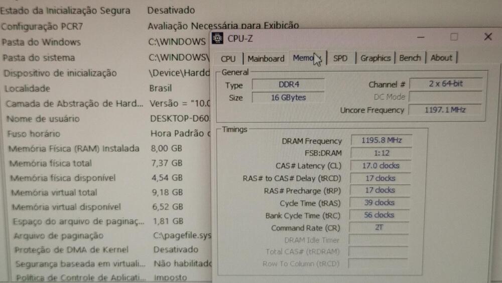 5. @Carlos2022 boa noite amigo, utilizei o hirens boot e até ele só reconhece 1 pente de 8gb, nem na própria BIOS mostra que tem outra ram instalada nos slots 3 ou 4 Utilizei o cpuz pelo hirens e mostra da mesma forma, que tem 2x8 e que esta em dual channel, mas na parte dos slots em spd, mostra que as memórias estão nos slots 1 e 2, mesmo estando uma delas no 3. Irei ficar no aguardo caso alguém saiba o que fazer porque já tentei de tudo, até colocando a configuração de fábrica da BIOS E uma obs que meu amigo não comentou, isso aconteceu pouco tempo depois de eu atualizar a BIOS pra uma versão mais recente, se não tiver mais o que fazer vou fazer o downgrade e voltar pra antiga. Agradeço desde já.